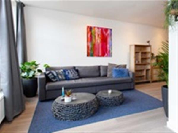 De ruime woonkamer valt direct op door het vele natuurlijke licht en de moderne afwerking. De woonkamer is ingedeeld met een gezellige zithoek waar u tv kunt kijken én een fijne werkplek, ideaal voor thuiswerken.